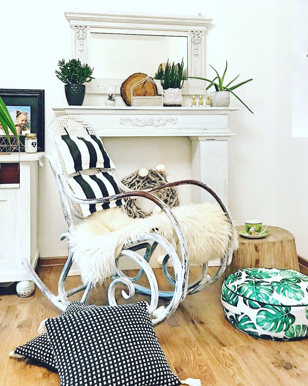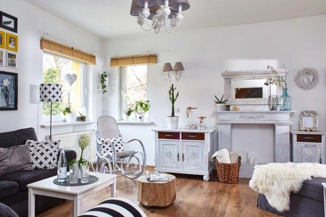 Pokój jest przedzielony przez komin,który centralnie dzieli go na dwie części .
